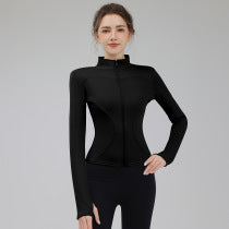 New fleece thickened full zipper standing collar sports cycling running yoga coat fitness long sleeve slim top winter