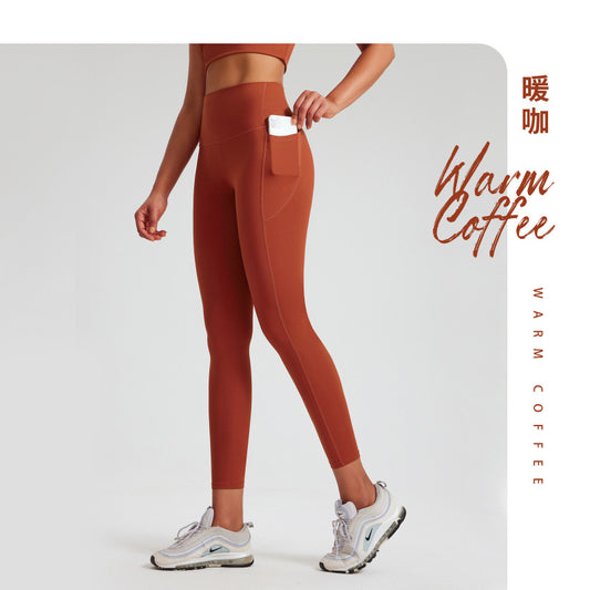 New Lycra high elastic naked feeling yoga pants high waist belly lift hip peach hip exercise fitness pants women